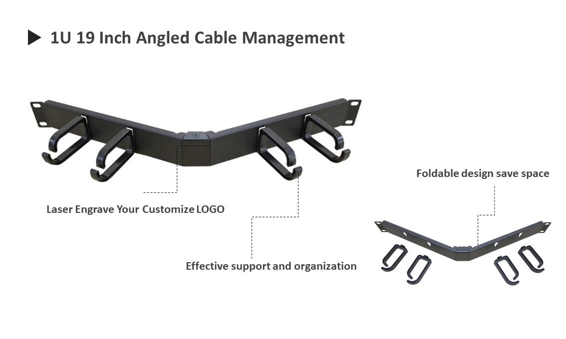 Es ist einfach, Ihr RJ45-Ethernet-Patchkabel durch abgewinkeltes Kabelmanagement zu organisieren. Sie können LOGO auch lasergravieren, damit es ordentlich und einzigartig aussieht.1U faltbares Kabelmanagement mit 4 Kleiderbügeln