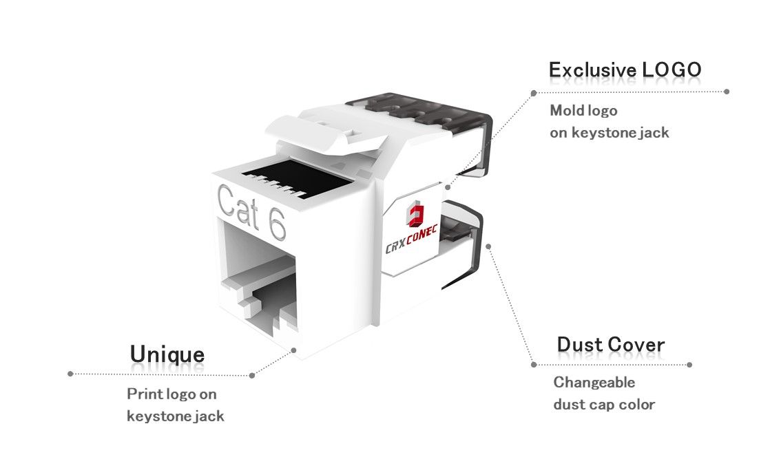 CRXCONEC Cat6 180-Grad-Keystone-Buchse kann mit verschiedenen Steckdosen wie Keystone-Buchsen-Patchfeld, Ethernet-Frontplatte und oberflächenmontierter Box für Cat6-Bulk verwendet werden. Kabel.